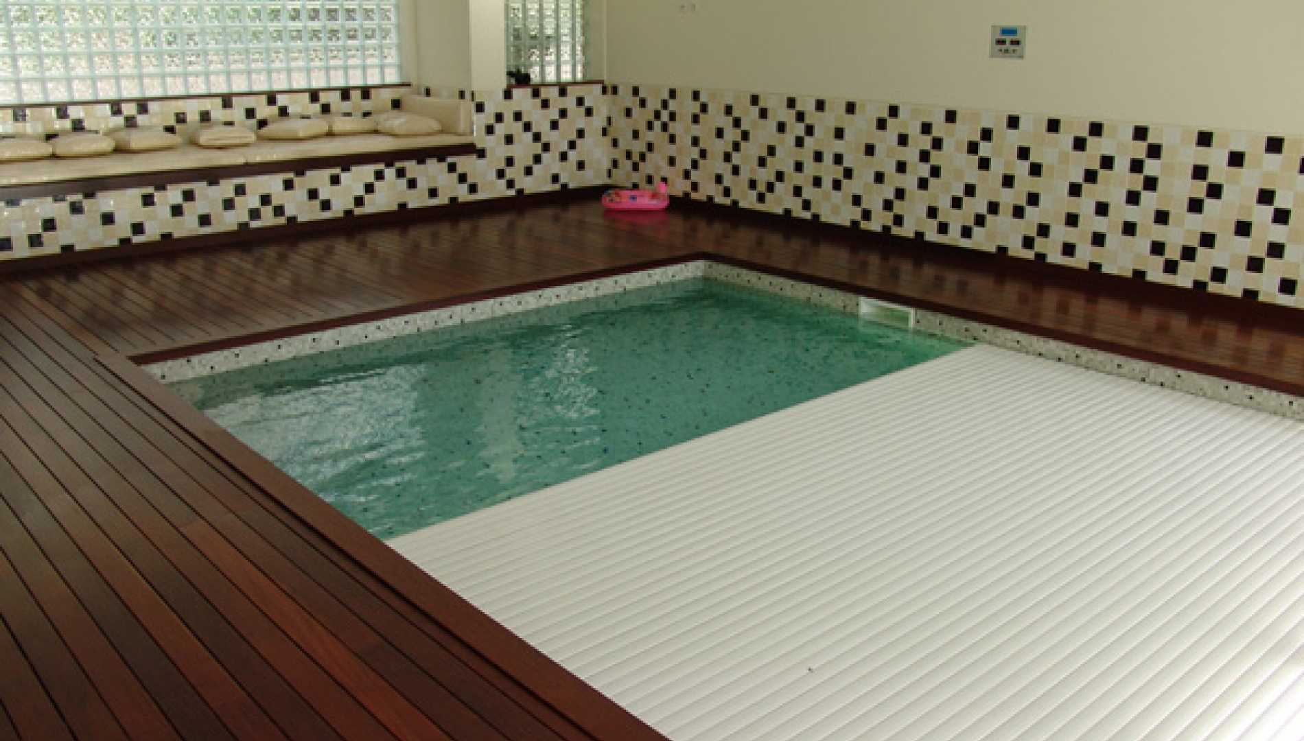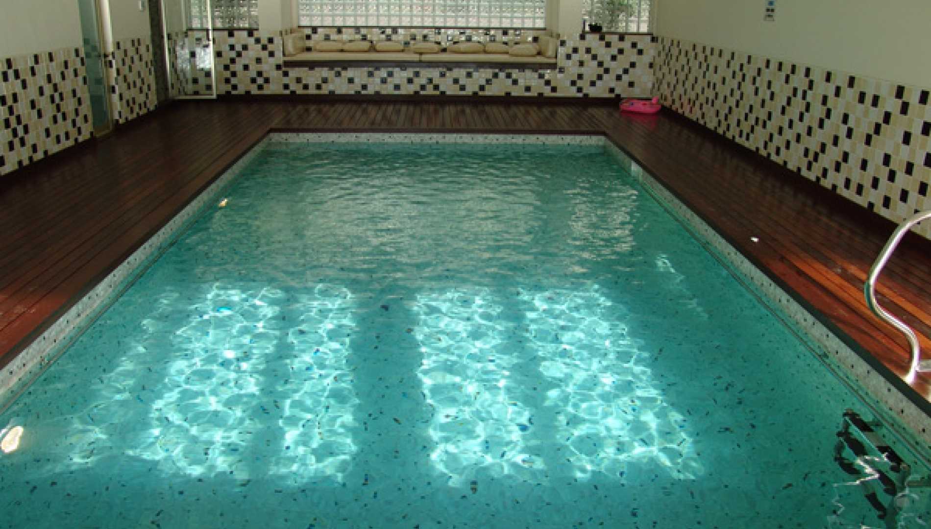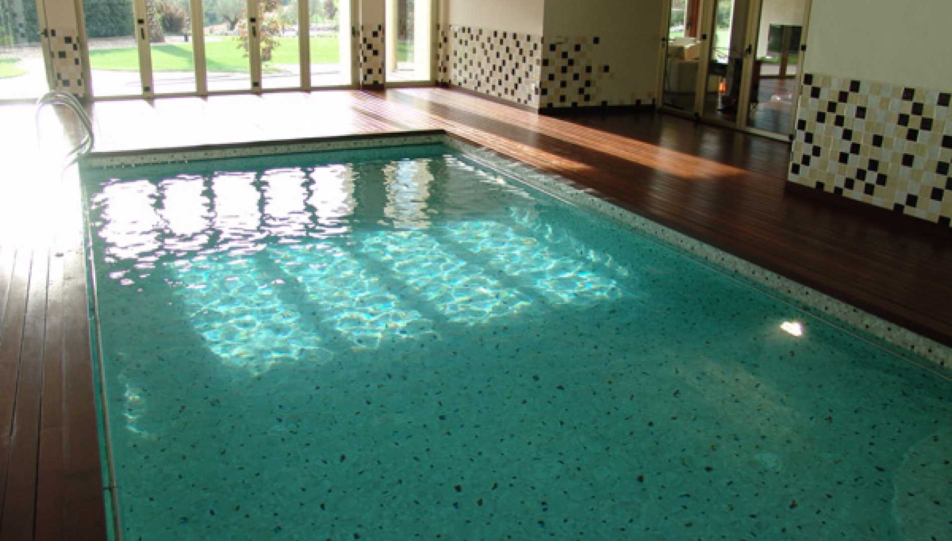 Piscina interior, construída em Betão Projectado, com 32 m2, de Skimmers. Revestimento a mosaico de vidro. Equipamento de filtragem e desinfecção Astralpool e dois focos de iluminação.