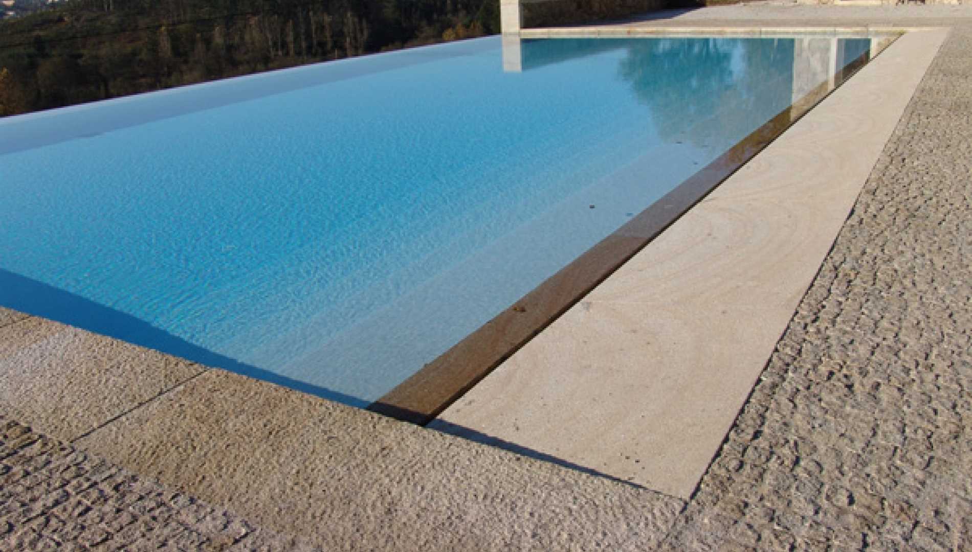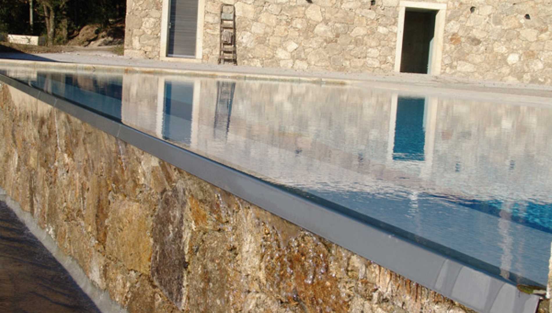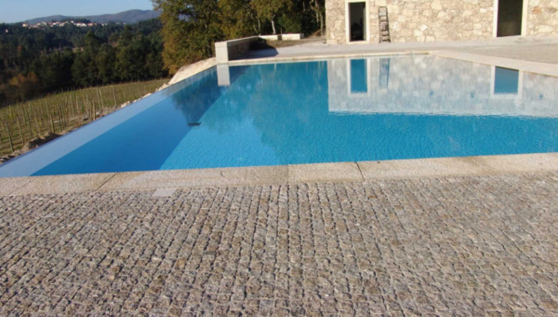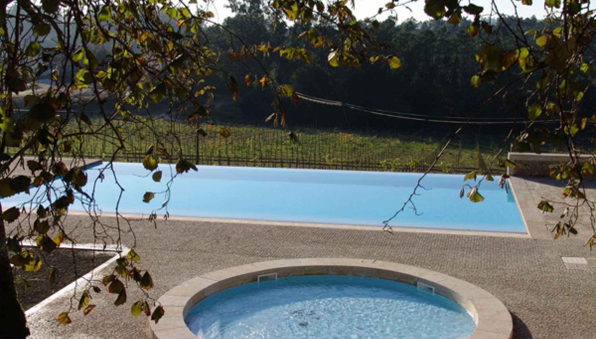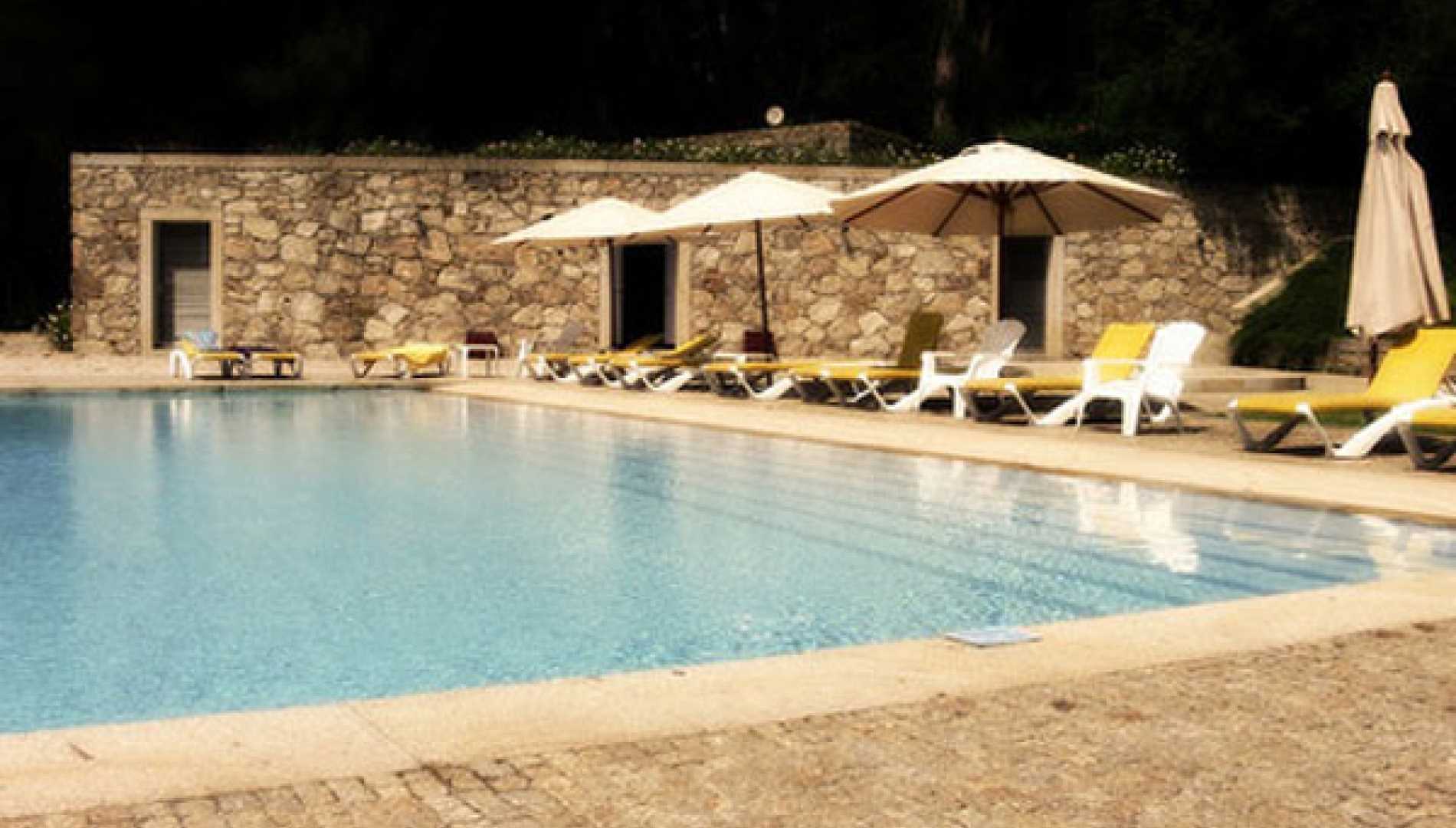 Piscina exterior para utilização pública, construída em Betão Projectado, com 98 m2, de transbordo numa lateral. Revestimento a mosaico de vidro azul mesclado, com escada em betão. Equipamento de filtragem e desinfecção Astralpool, quatro focos de iluminação. Possui na zona envolvente uma piscina de crianças.